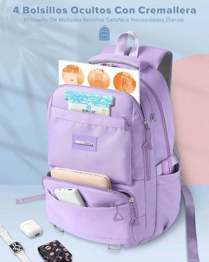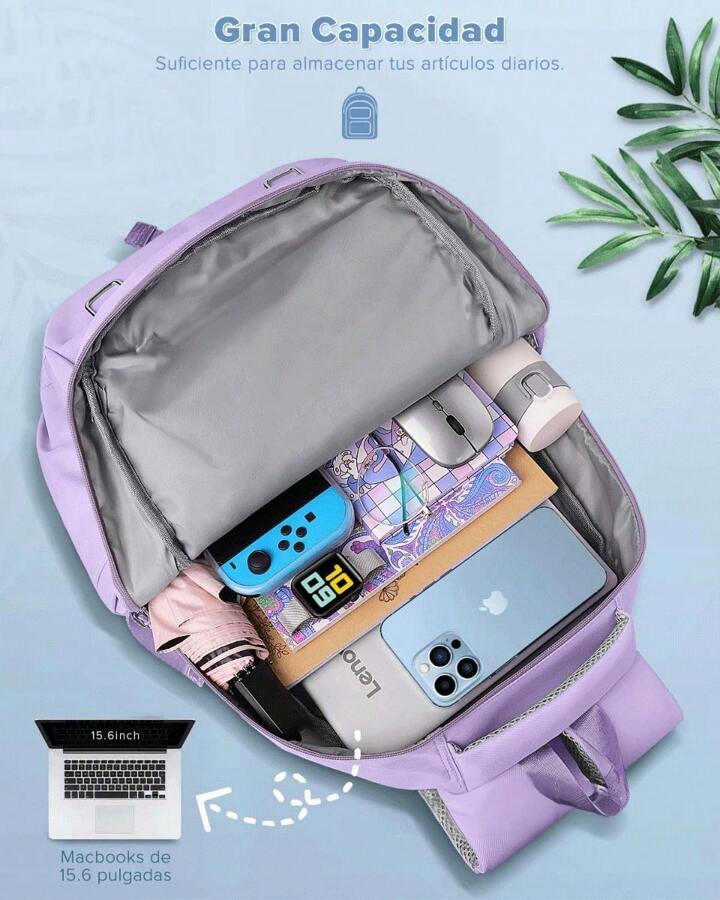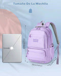 Laptop backpack for teenage girls: school backpack size: 30.0 cm x 17.0 cm x 47.0 cm, large main compartment for books, pencil case, lunch box, 15.6 inch computer, etc. The divider in the main compartment is suitable for your laptop. The front pocket is perfect for storing your ID and keys, and the two side pockets can hold water and a small umbrella.