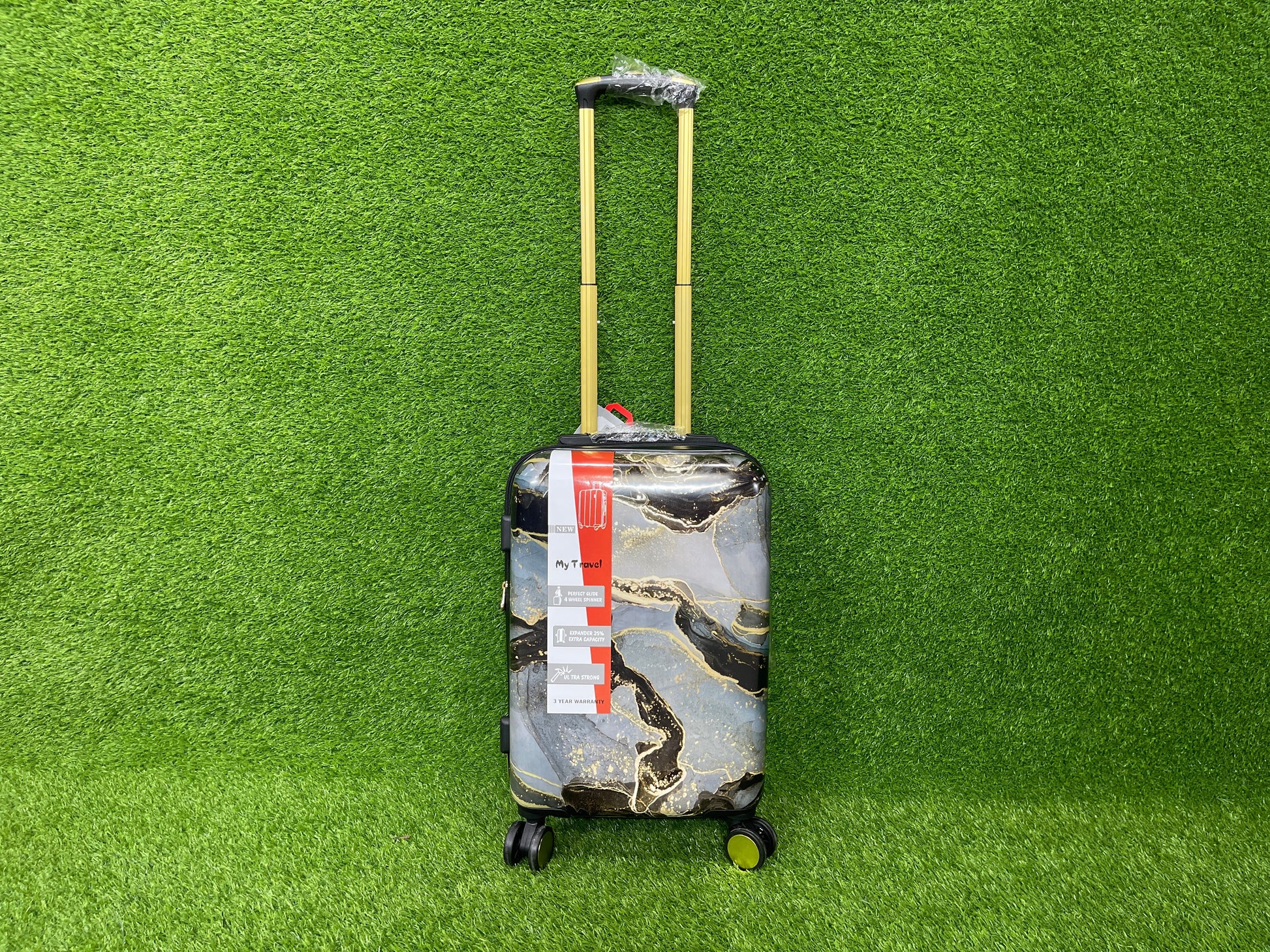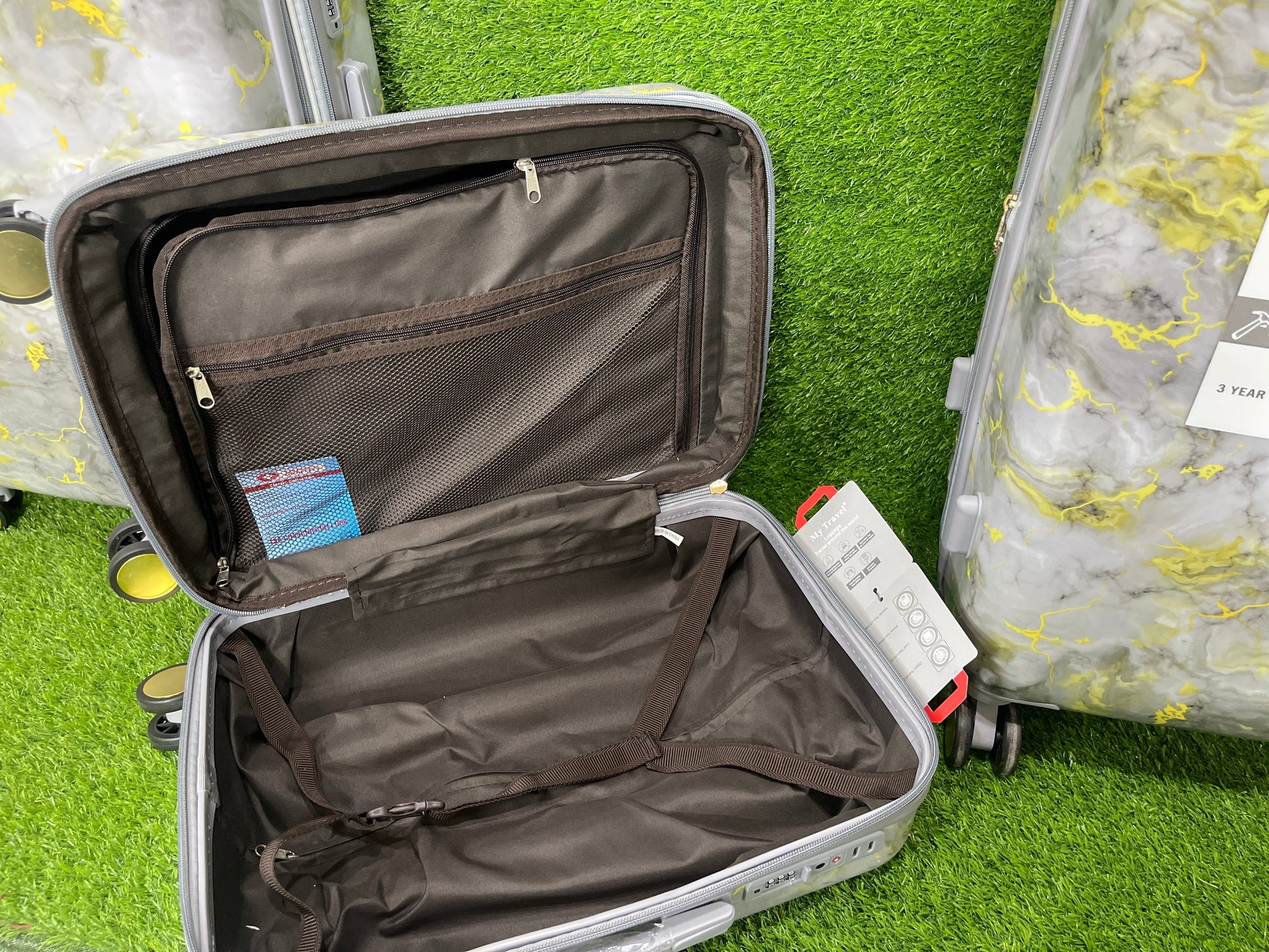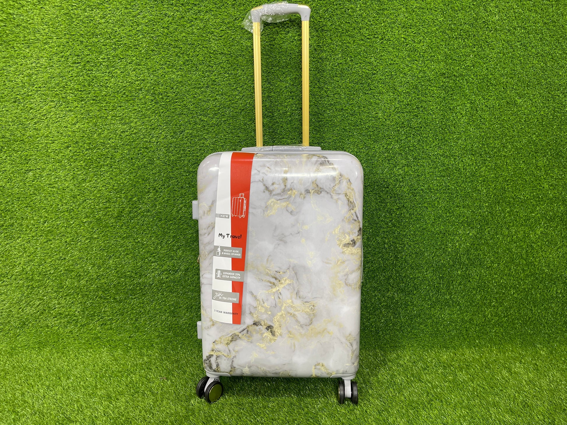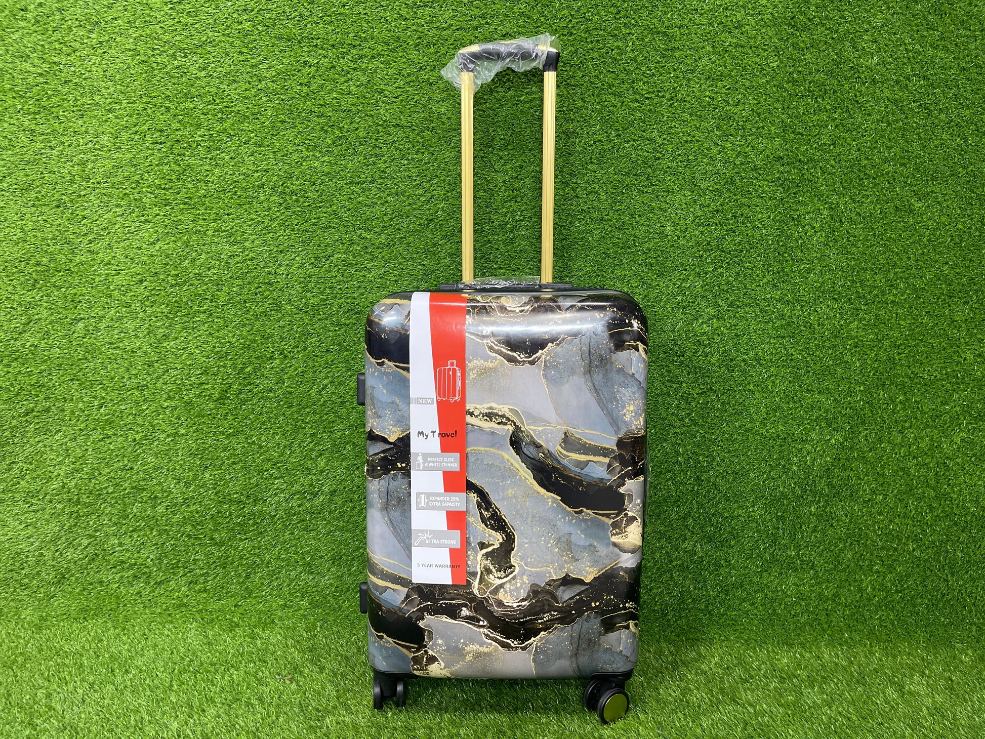 - Introducing our innovative travel luggage, featuring a stunning marble design.