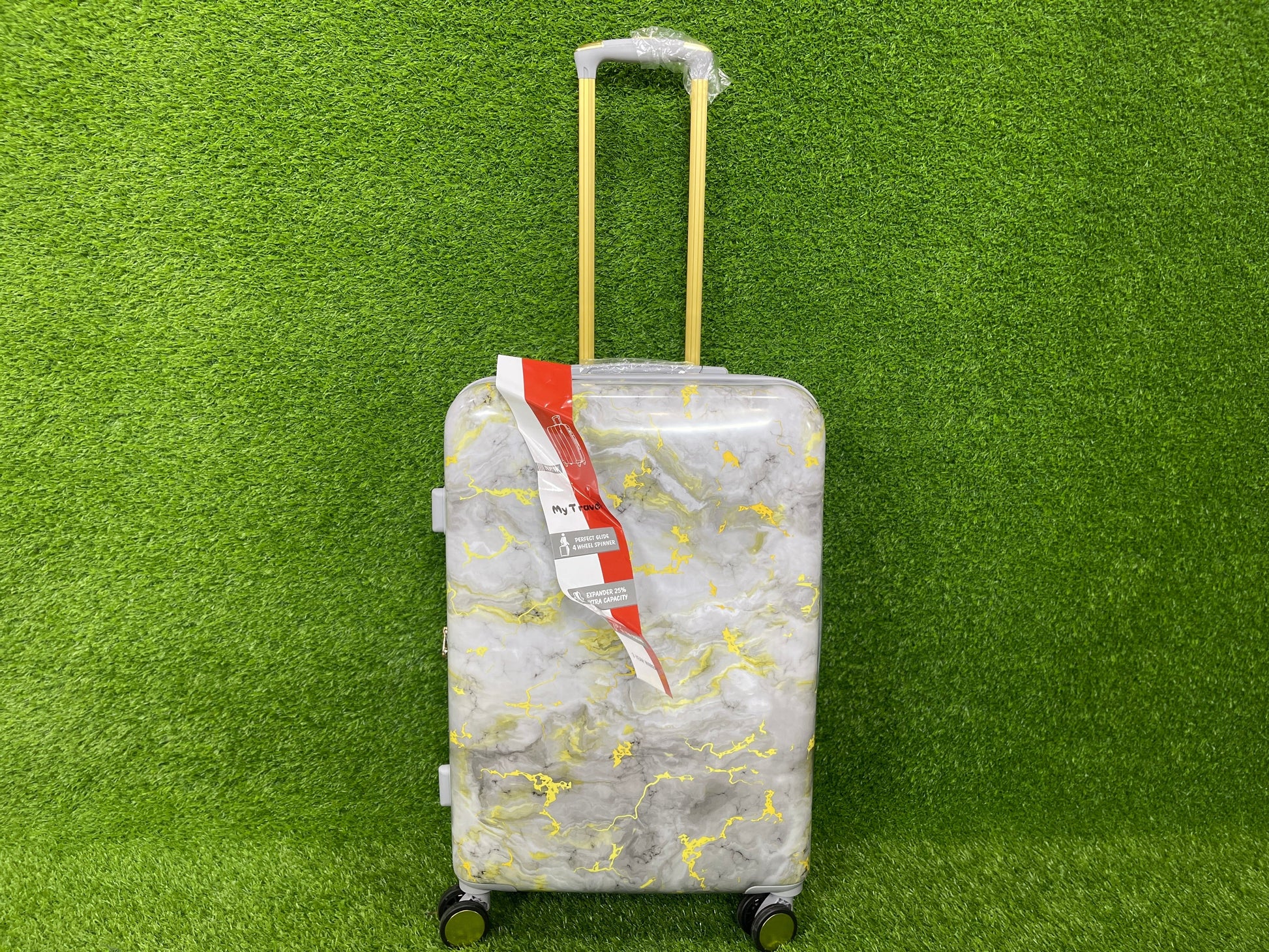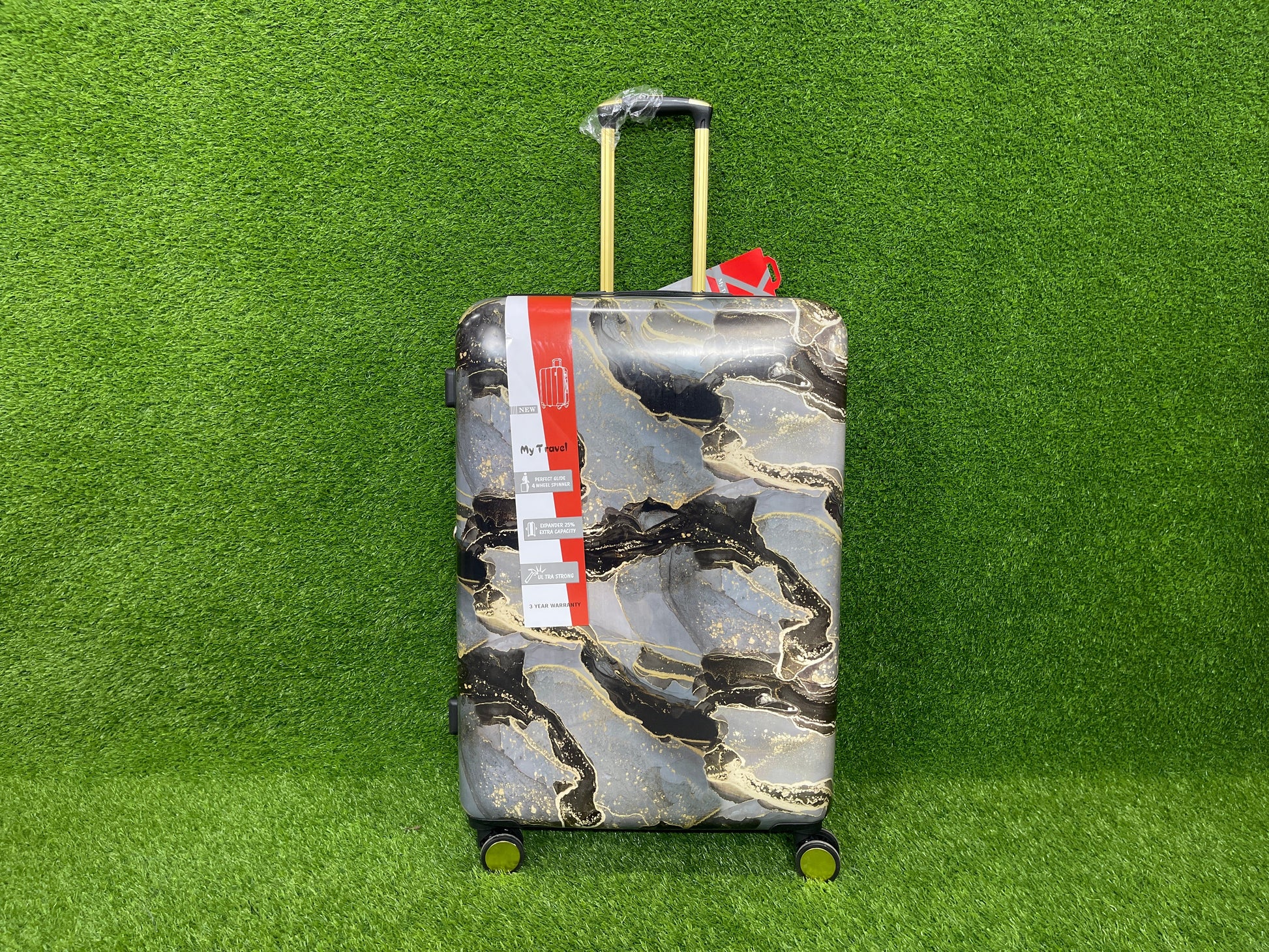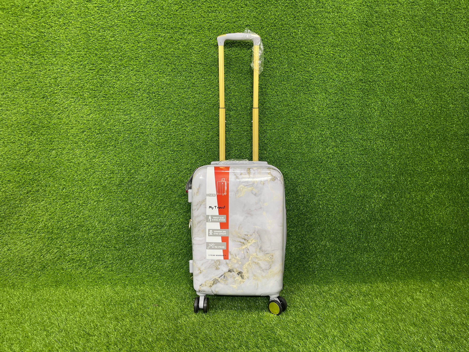- Introducing our innovative travel luggage, featuring a stunning marble design.