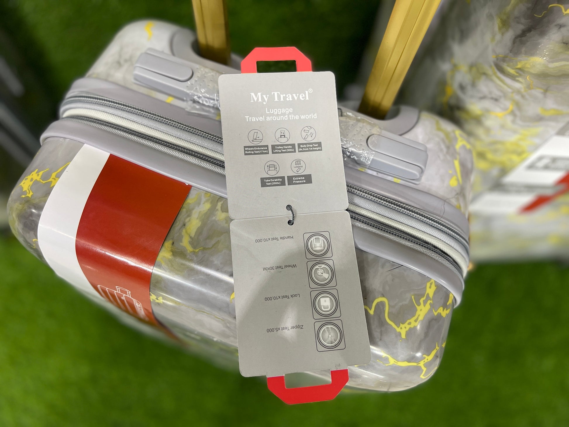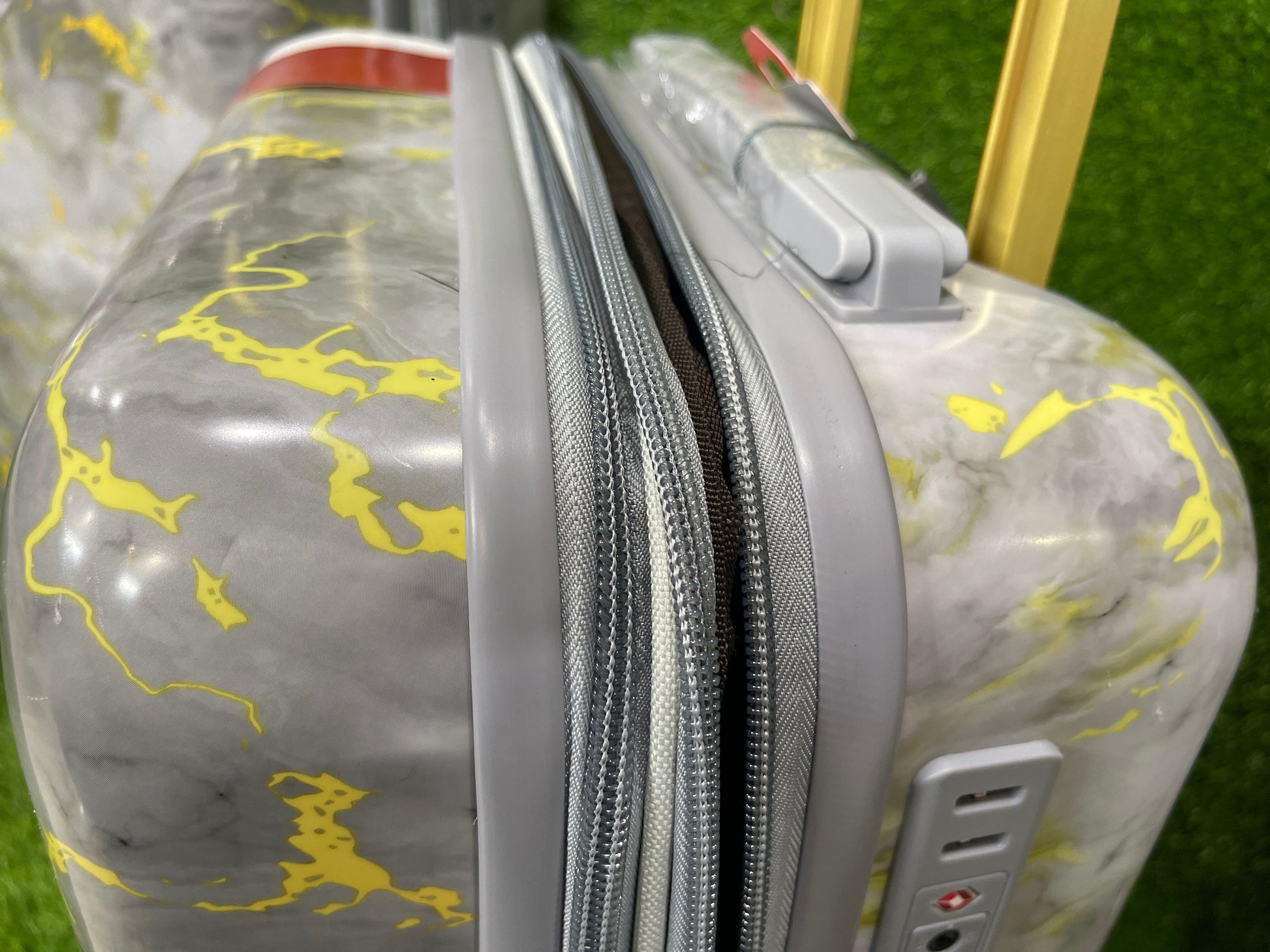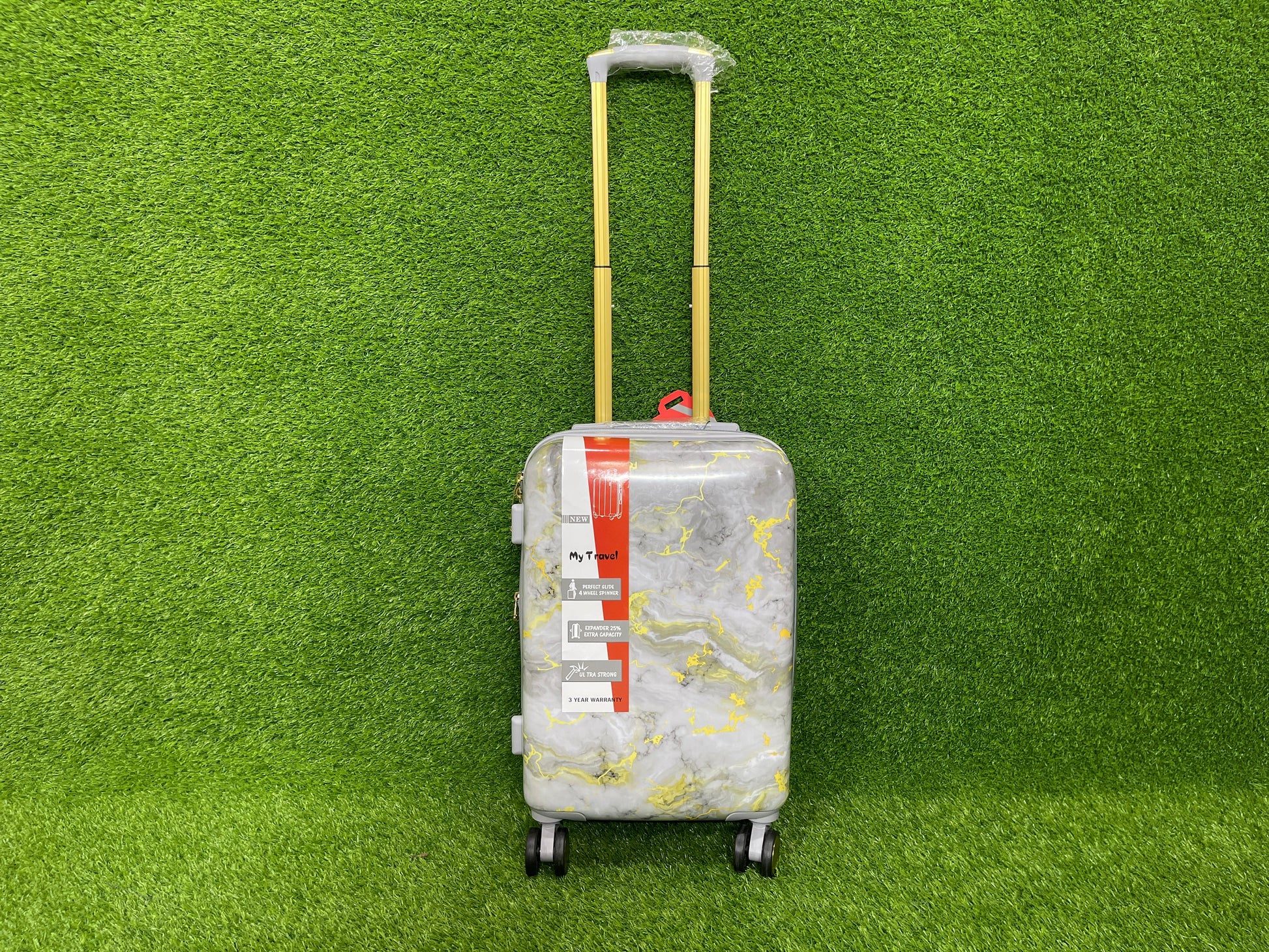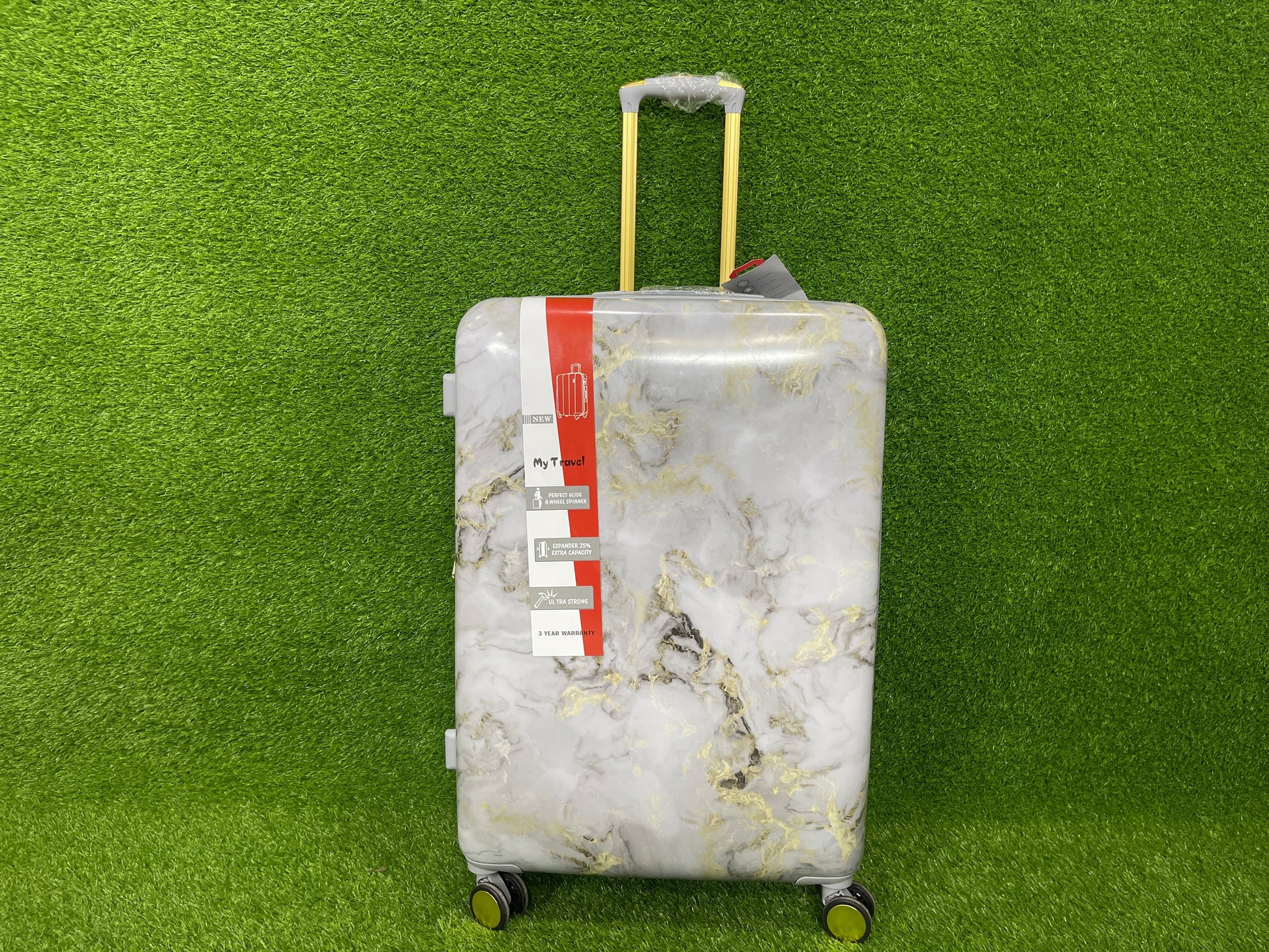 - Introducing our innovative travel luggage, featuring a stunning marble design.